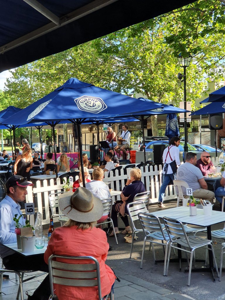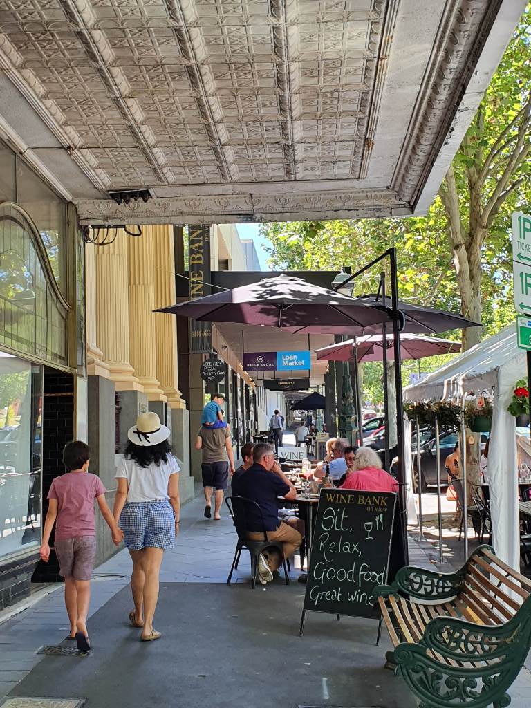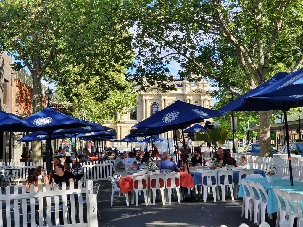 Saturday evening in Bendigo is a lively affair. Many streets were shut to traffic for outdoor dining and the people of Bendigo just embraced it. There was live music around town added to the convivial atmosphere. We ate al fresco at the Tap House, a cool beer house inside a cavernous old store room, it was great.