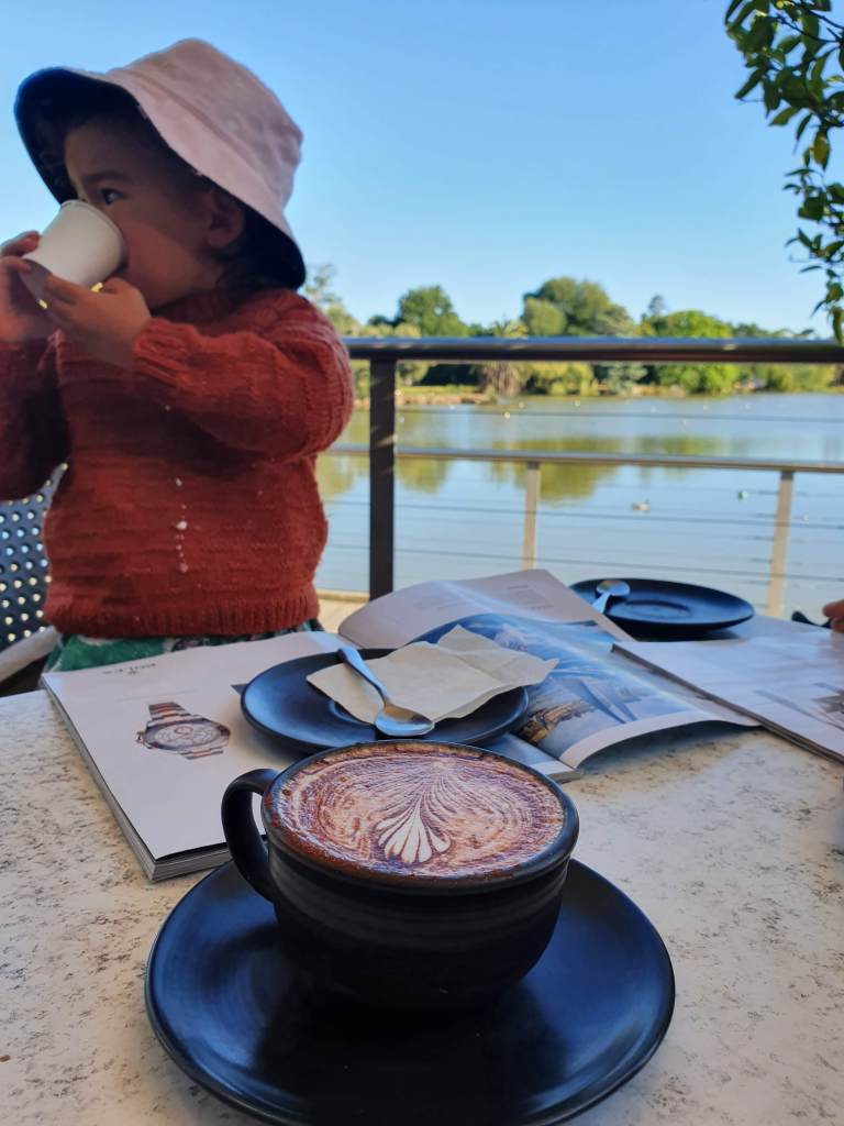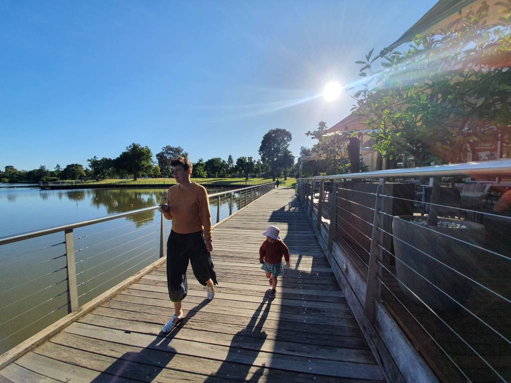 At the southern edge of the lake is a cafe/restaurant called the Broadwalk, which has absolute water front views, and appears to have a monopoly of the views. At 8am, the sun was low and the view from the deck is absolutely beguiling. Birds and ducks were gliding above the surface of the lake, where their wing tips would gently touch the water surface with every flap. The trees would wave softly with the morning breeze, which bring a mild chill to our faces. Every man, woman and dog appeared to have dressed up in their yoga pants as they all power walked passed our table.