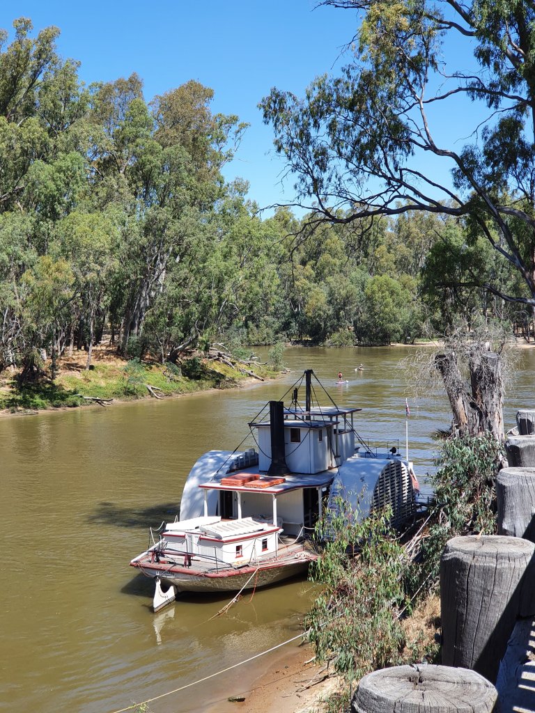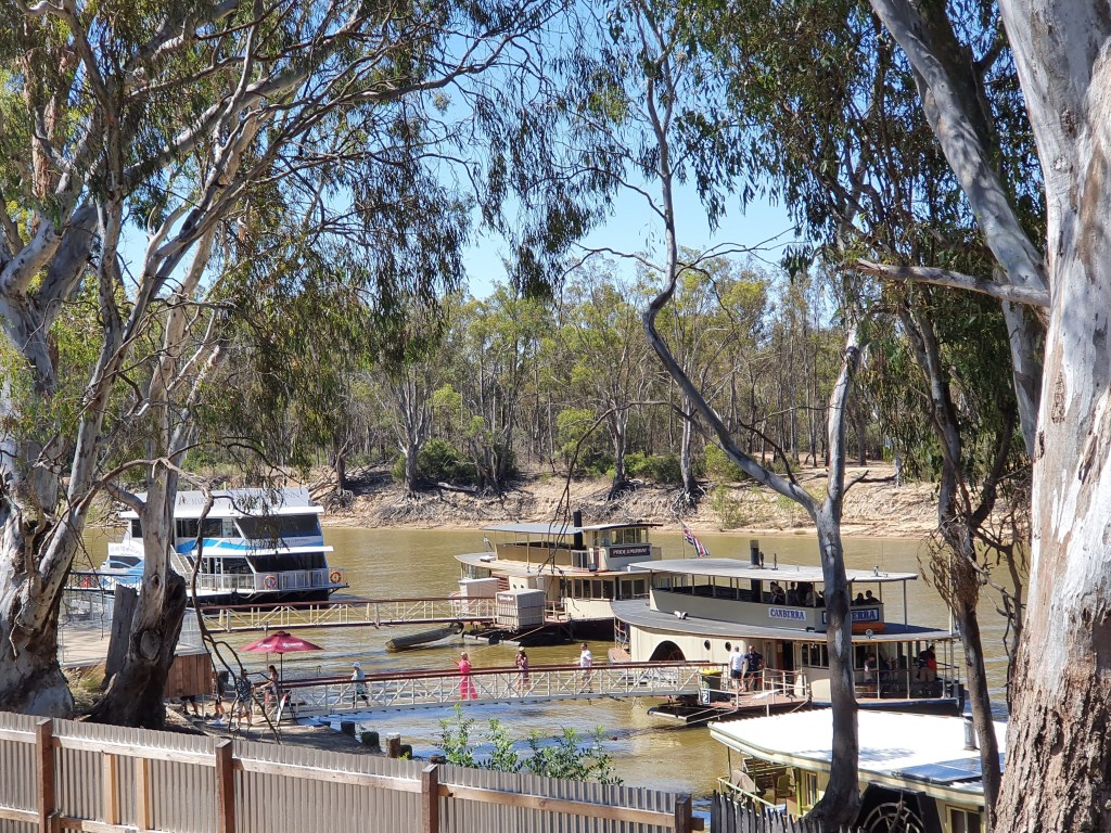 Whatever apprehension I had about the streets were immediately shocked away by the piercing striek of a paddlesteamer whistle. The noise gave me a visceral fright that caused me to jump, and caused Ruby to run over me asking to be picked up. A few more loud whistles followed and I immediately ran towards the viewing platform on the wooden port to get my first glimpse of the steam paddleboat. It was was a delightful little wooden boat named Emmylou, just maneuvering to dock. To my genuine surprise there was not just one boat, but dozens of paddlesteamers all lined up against the dusty bank of the Murray and dozens more of modern house boats in the distance. It was truly a sight to behold and instantaneously transported me back in time. I was instantly smitten.