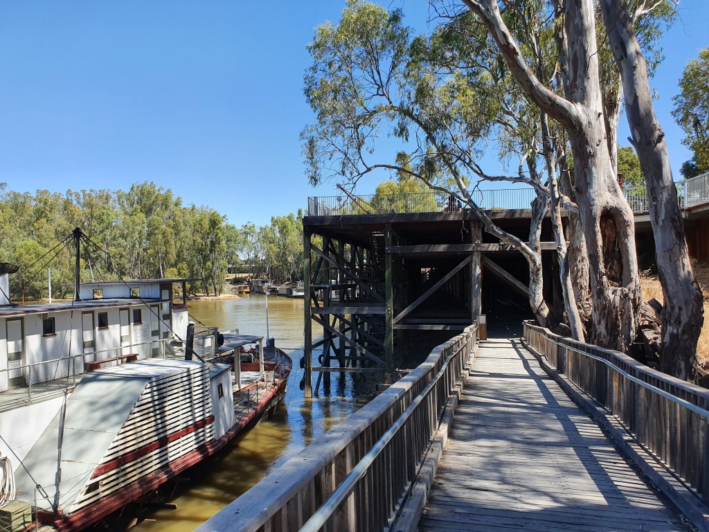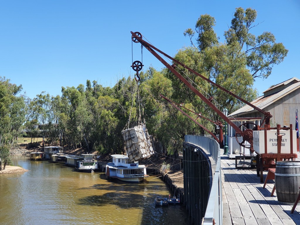There was neat little museum that explained the history of the port and also contained a lot of historic artefacts, including an entire steam train, engine and carriage. You can access the multi-level dock structure which is more impressive from water level. There are 4 different level at which boats can dock, depending on the height of the river. The top level is so tall that I cannot even imagine the volume of water required to flood the river up to that height. Apparently, and not infrenquently, the Murray would flood the port and along with the town.