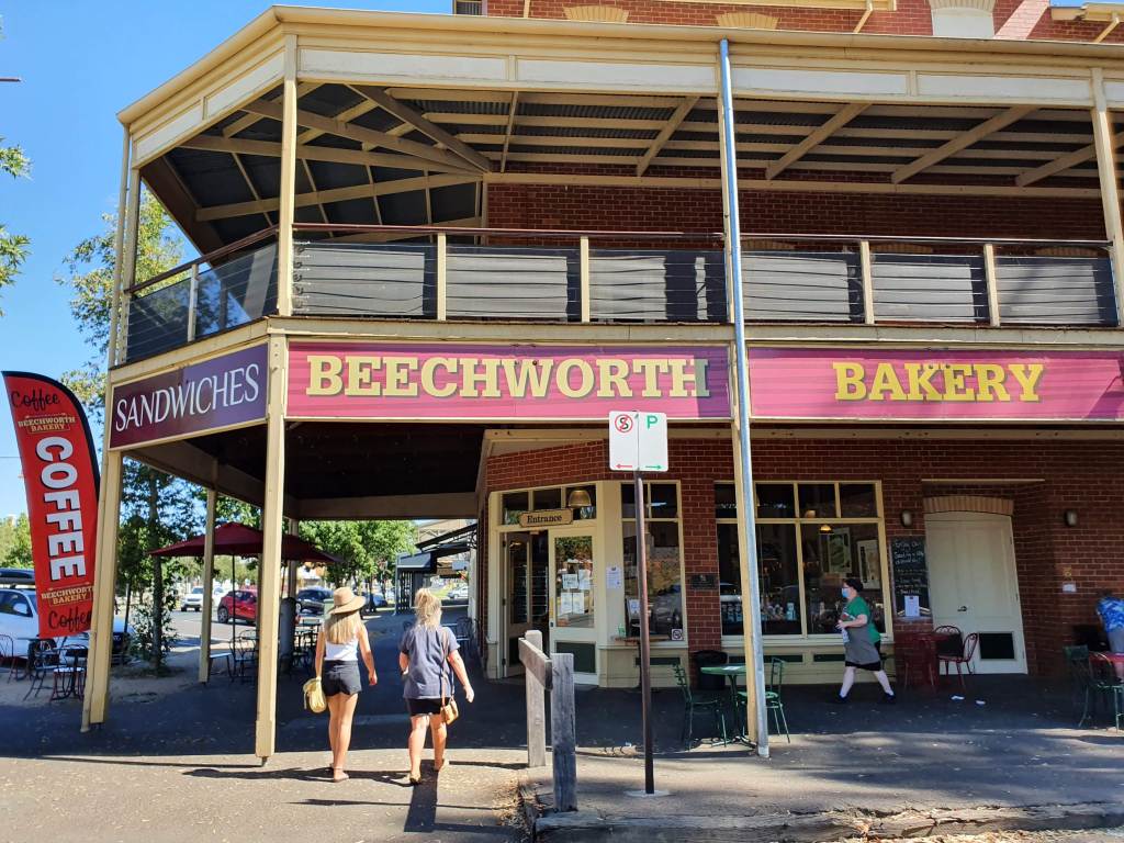 I moved on to Beechworth Bakery next, which as the name suggest, is the bakery from Beechworth. For those unfamiliar with Victoria, Beechworth is charming little gold mining town about 1 hour south of the NSW Victorian border surrounded by pretty hills and gorges as well as lots of excellent wineries. The place has recently become somewhat of a rural mecca for authentic regional cuisine that’s all about farm to table. Beechworth Bakery hold the biggest building on the main corner of town, and is so popular that 6 further stores have sprouted up around rural Victoria. Unfortunately, the Beechworth bakery is one of the worst bakeries in the Australia, and every iteration of the bakery is as bad as the next. And for some reason, I am always drawn to the bakery everytime I visit a small town that has one, like a moth to flame. Every single one of the bakeries are decorated similarly, and appear immediately warm and charming. The interior is always woodlined with lots of little banners and pretty pictures of pastries and pies. The cakes in the displays cases always looked appealing from afar, that is until you moved in for a closer look and the quality can only be described as soviet-era. Nothing ever looks appetizing and for some inexplicable reason I always end up buying a couple of things, which I immediatley regret. This time I got a bacon and cheese toasty and a french vanilla square, both were below average and barely edible. I sat there with Ruby chowing down my dry oily sandwich, as I re-evaluated my food and life choices. How did they trick me again? How did my life go so wrong?