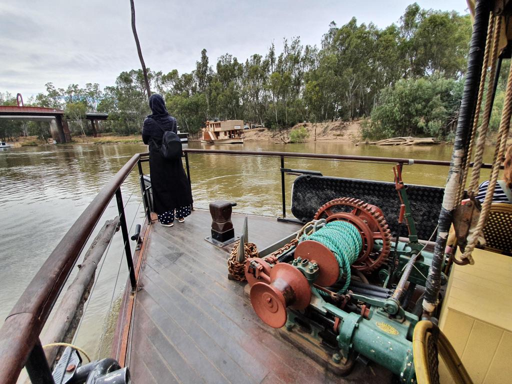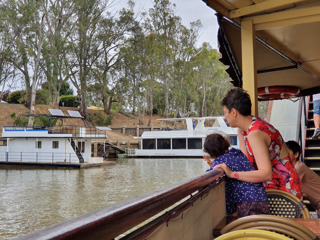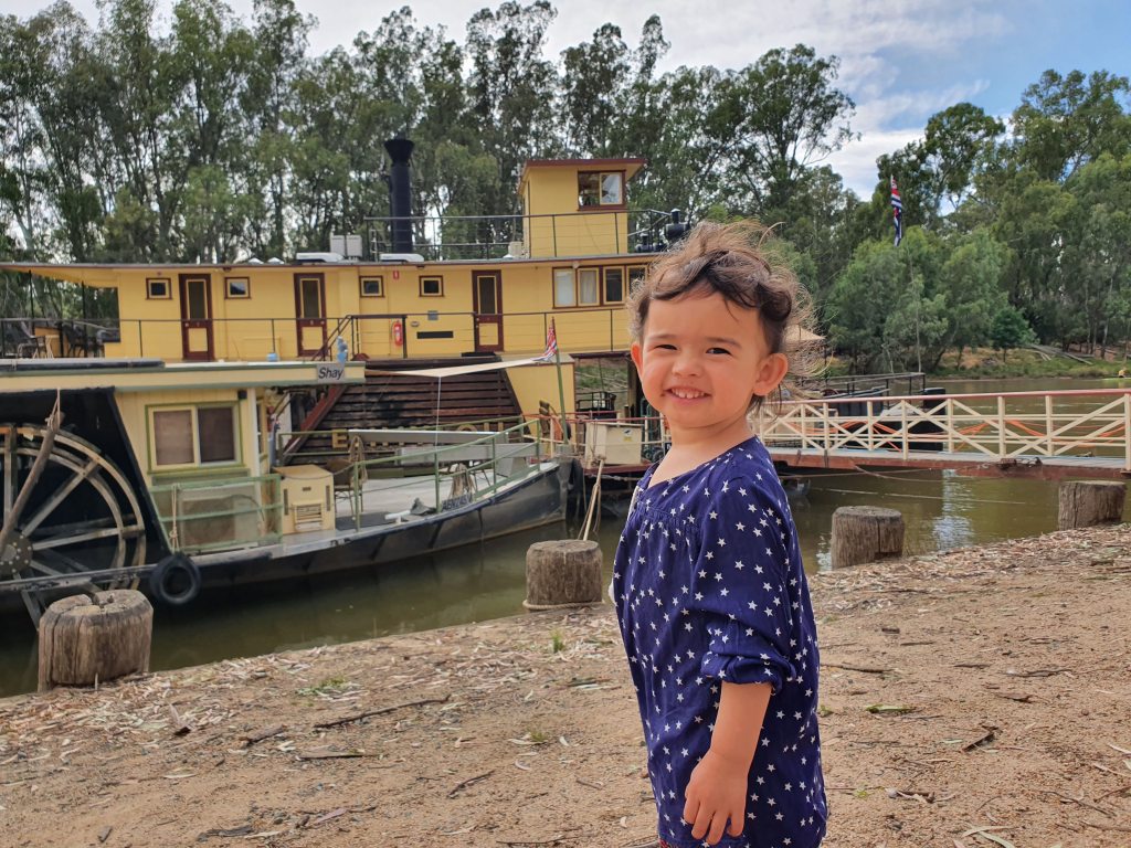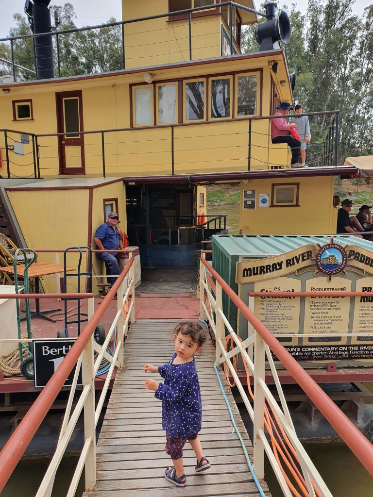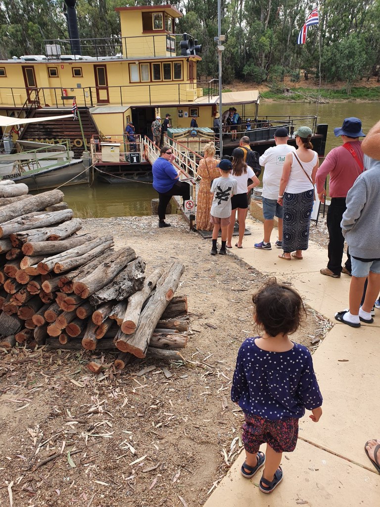 At quarter to nine we arrived at the dock for a beautifully restored paddlesteamer called Emmy-Lou. There are hundreds of wooden logs stacked up against the river bed ready to be carted on to the boat. Ruby was in all shapes of excitement, she squealed with exciting upon seeing the boat, and then danced around the logs, before jumping up and down and asking me to take her on the boat.